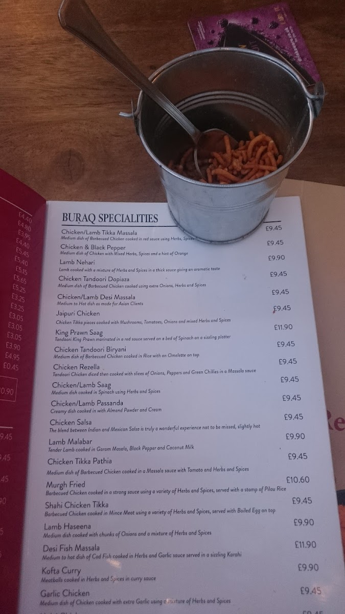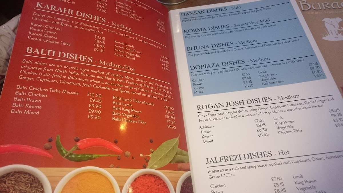 At Buraq Indian Restaurant Menu, you'll find a delightful fusion of traditional and contemporary Indian flavors. Situated in the heart of Kirkham, Preston, this cozy eatery brings a range of mouth-watering dishes that cater to every palate. Whether you're craving a classic chicken tikka masala, a rich, aromatic biryani, or a flavorful vegetarian option, there’s something for everyone. The menu offers a variety of starters, mains, and side dishes, each crafted with fresh ingredients and bold spices, transporting you straight to the heart of India. Paired with fragrant basmati rice or freshly baked naan, each meal promises a satisfying dining experience. Perfect for a casual dinner or a special celebration, Buraq Indian Restaurant Menu invites you to savor the best of Indian cuisine right here in Preston.